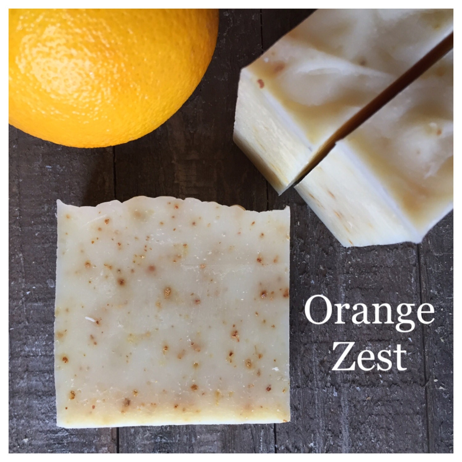 Avocado, Canola, Coconut and Olive Oils, Shea Butter, Organic Orange Peel and Orange Essential Oil. NO artificial colors, fragrances or chemicals are added! All natural!